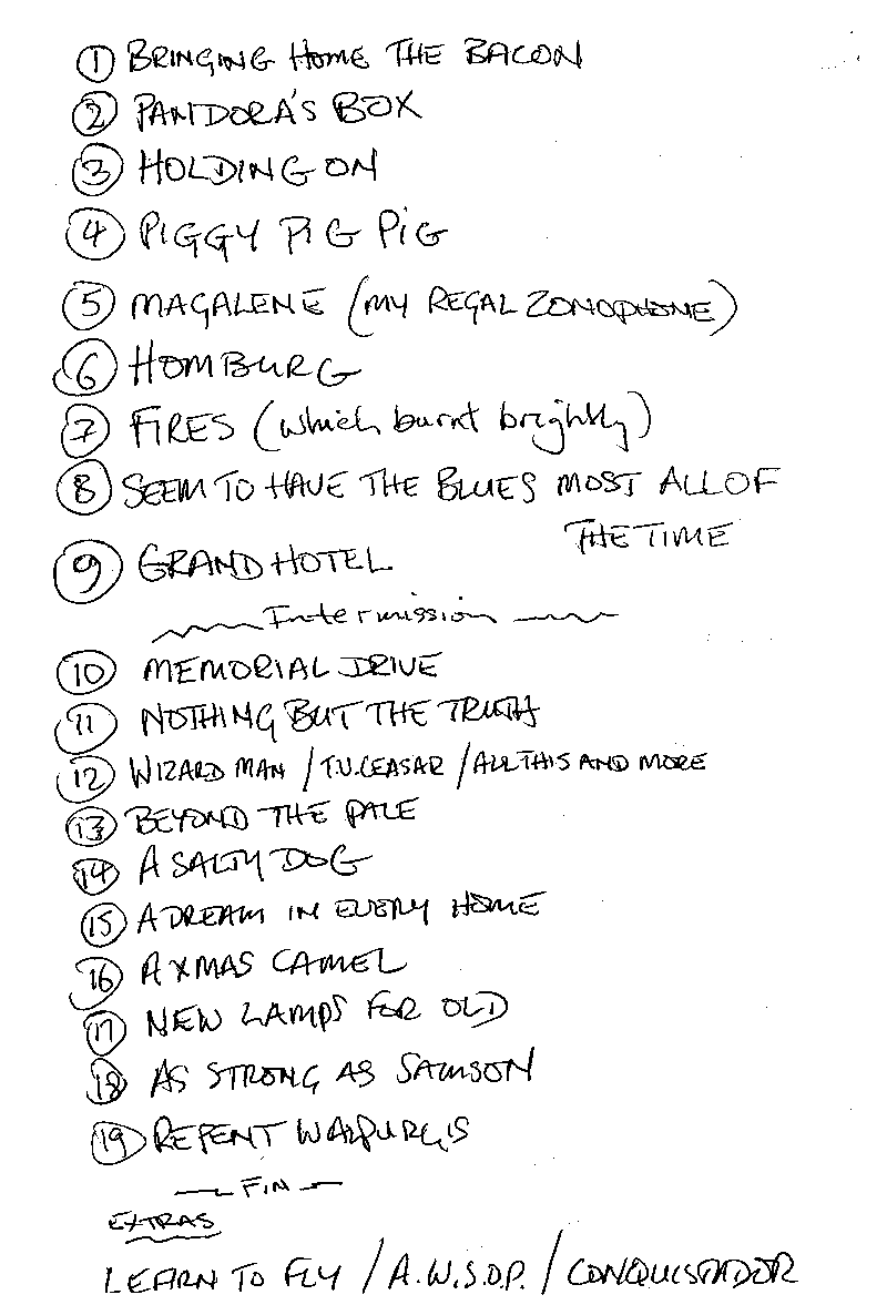 Koncerten varede 115 min., blev tv-optaget og udsendt på dk4 den 30. december 2001 med følgende indhold: