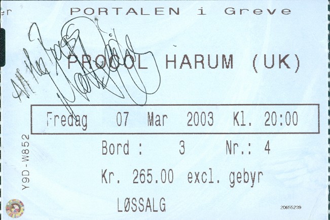 Billet fra Procol Harum i